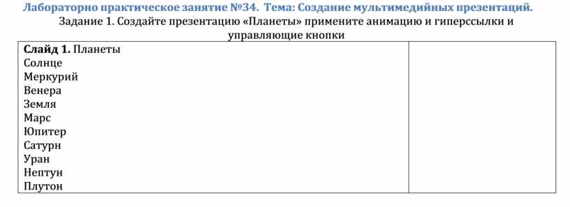 Лабораторно практическое занятие №34. Тема: Создание мультимедийных презентаций.