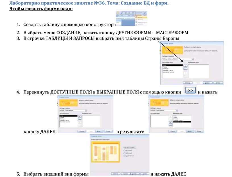 Лабораторно практическое занятие №36. Тема: Создание БД и форм. Чтобы создать форму надо: