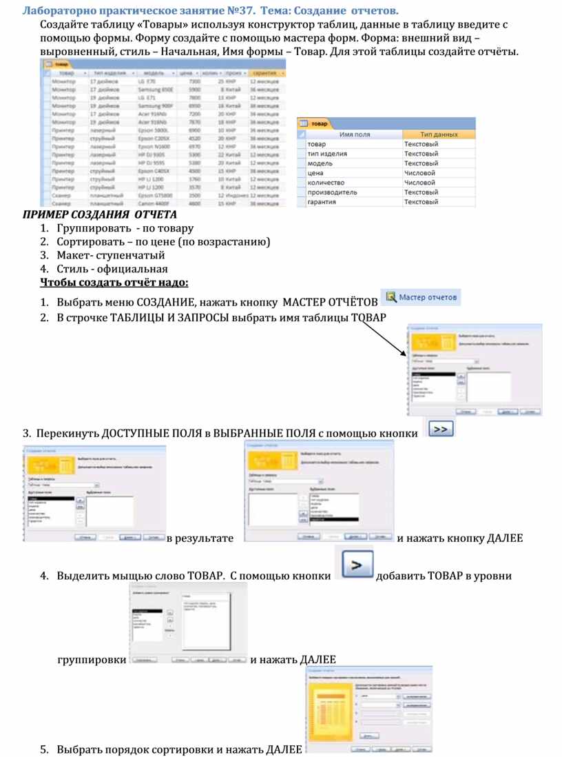 Лабораторно практическое занятие №37. Тема: Создание отчетов.