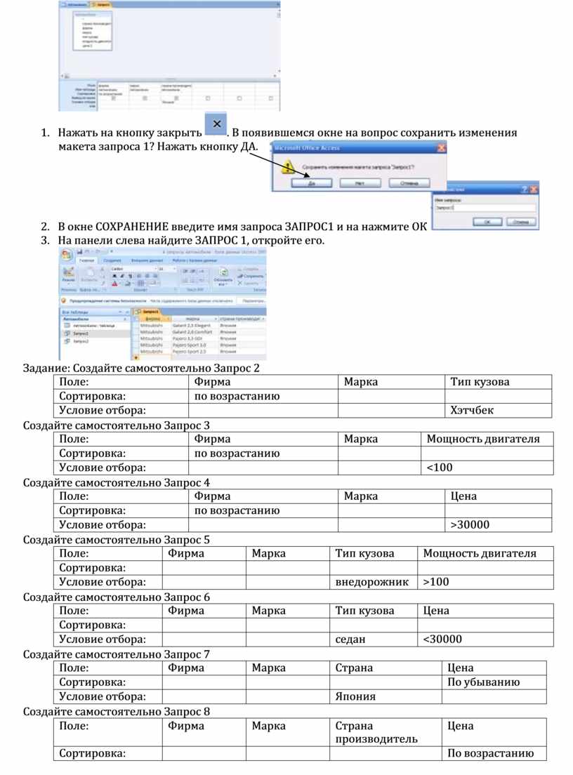 5. В окне СОХРАНЕНИЕ введите имя запроса ЗАПРОС1 и на нажмите ОК