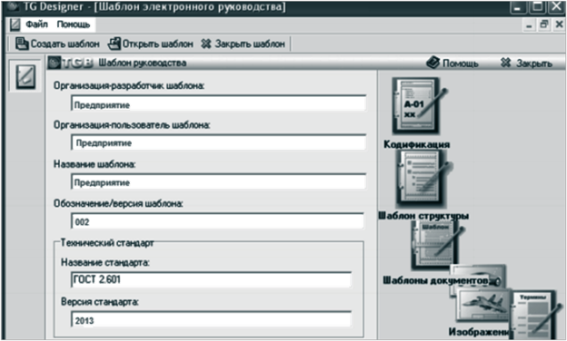 2) создать новый шаблон и указать системе путь к каталогу, где он размещен (система сгенерирует пустой шаблон электронного руководства);