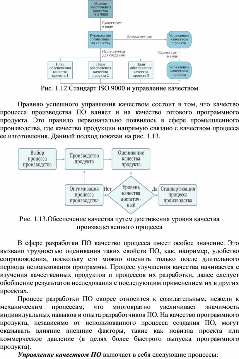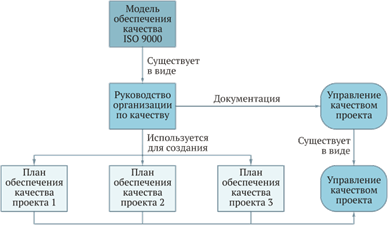 Взаимосвязь между ISO 9000, управлением качества и планами обеспечения качества отдельных проектов показана на рис. 1.12.