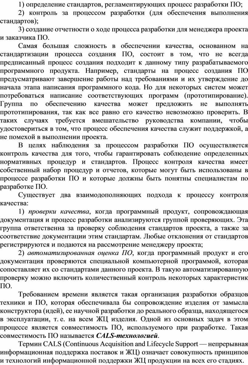 2) контроль за процессом разработки (для обеспечения выполнения стандартов);