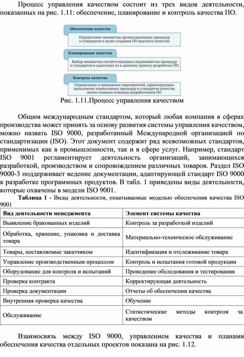Процесс управления качеством состоит из трех видов деятельности, показанных на рис. 1.11: обеспечение, планирование и контроль качества ПО.
