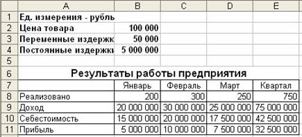 5. В ячейку Е14 введите формулу = СРЗНАЧ(Е6;Е9;Е12).