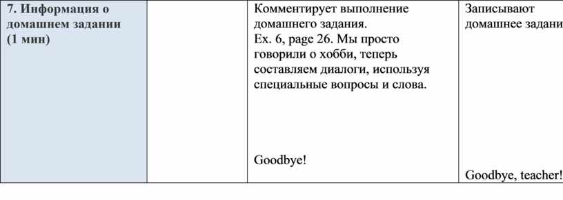Комментирует выполнение домашнего задания. Ex. 6, page 26. Мы просто говорили о хобби, теперь составляем диалоги, используя специальные вопросы и слова.