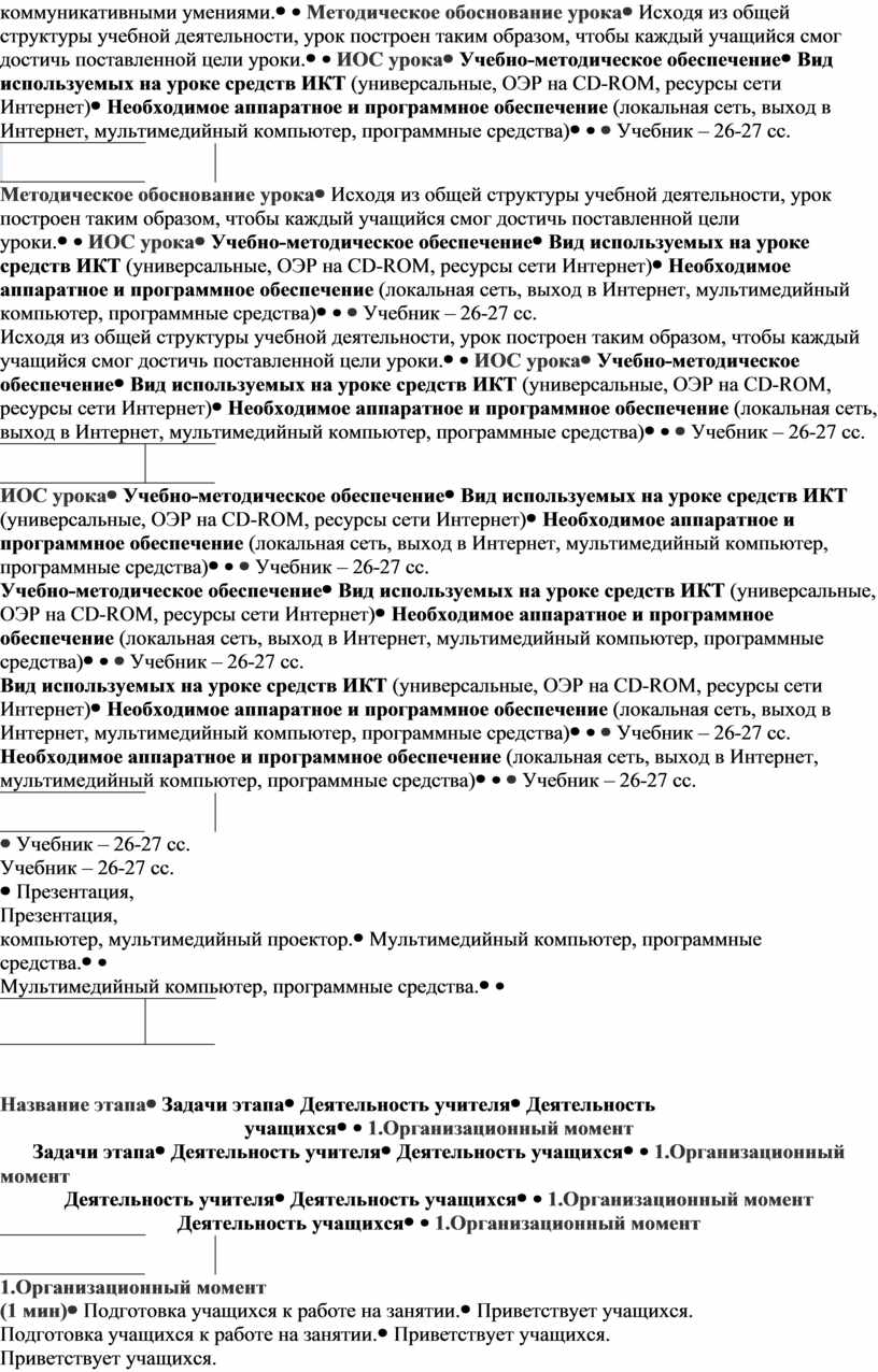 Исходя из общей структуры учебной деятельности, урок построен таким образом, чтобы каждый учащийся смог достичь поставленной цели уроки. |