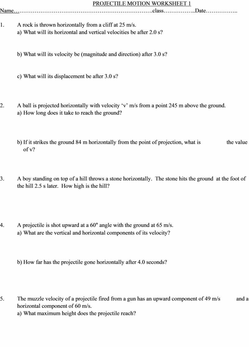1. A rock is thrown horizontally from a cliff at 25 m/s.