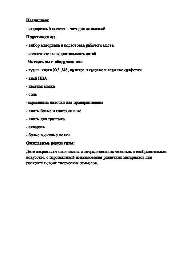 -Продолжать знакомство с нетрадиционными техниками рисования.
