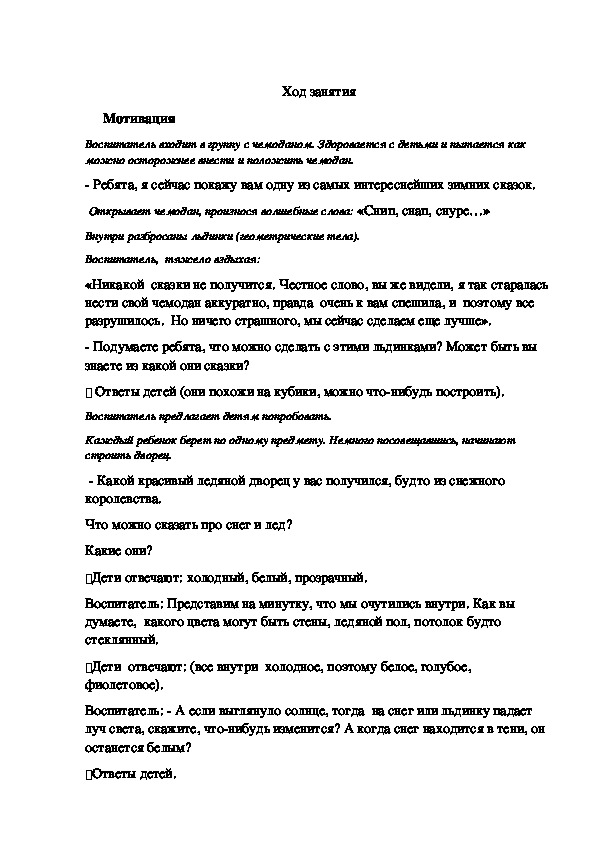 Воспитатель: А если выглянуло солнце, тогда на снег или льдинку падает