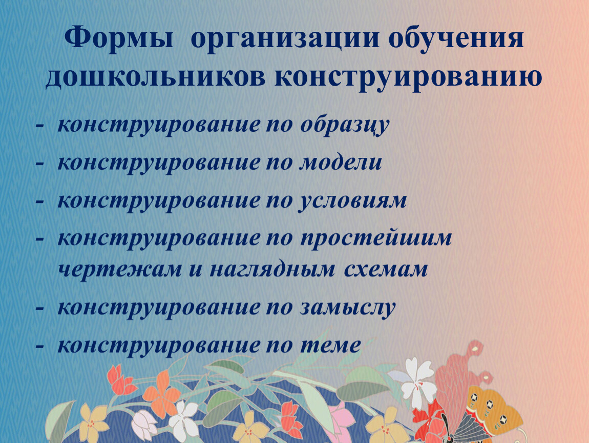 -развивать умение конструировать по образцу, чертежу, заданной схеме, по замыслу;