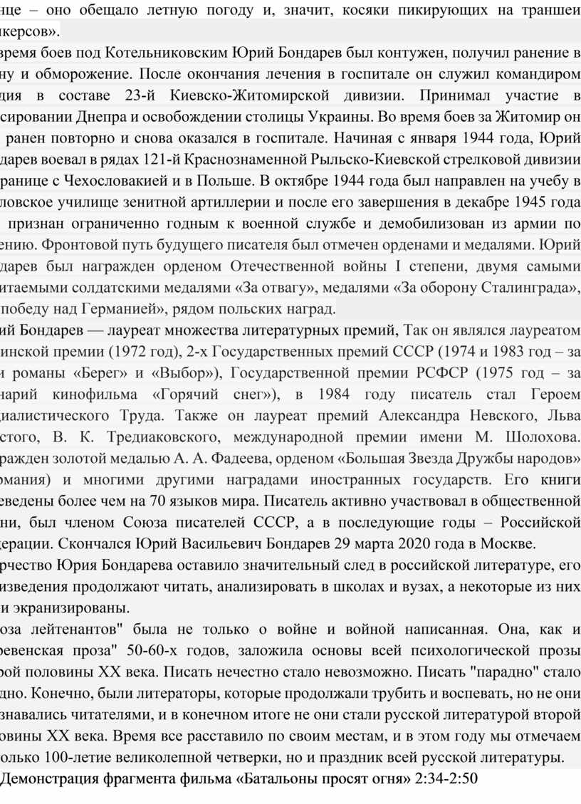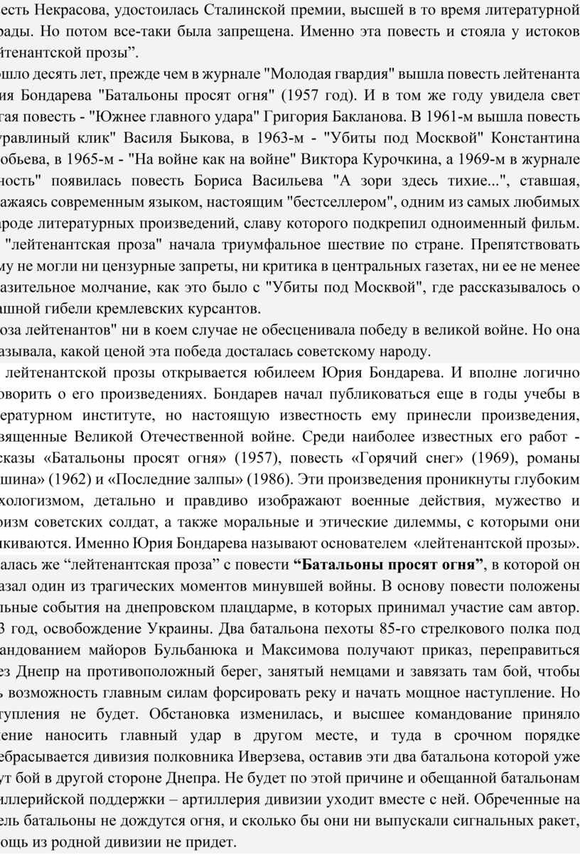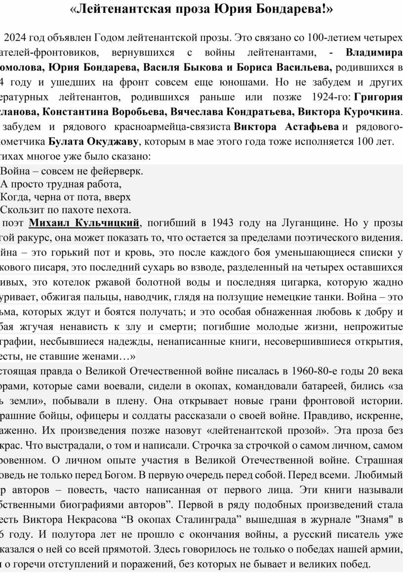 «Лейтенантская проза Юрия Бондарева!»
