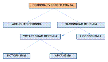 - Лексика русского языка с точки зрения её активного и пассивного употребления. Устаревшие и новые слова.  |