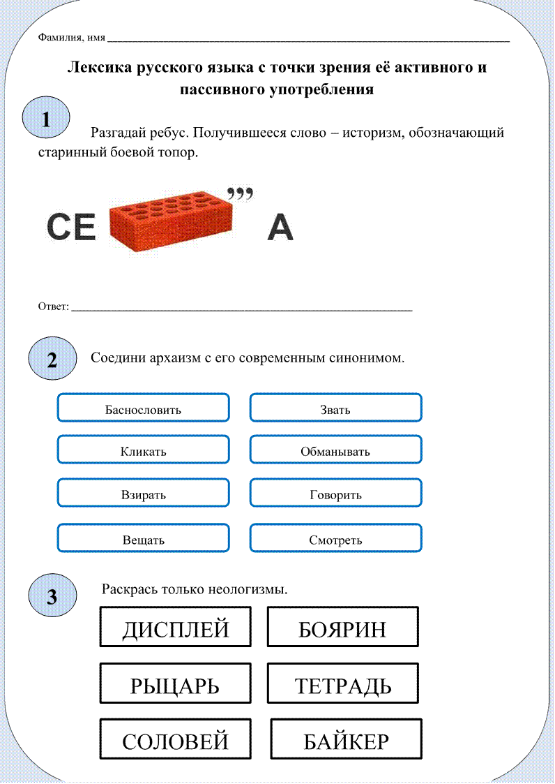 Лексика русского языка с точки зрения её активного и пассивного употребления