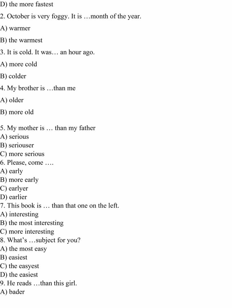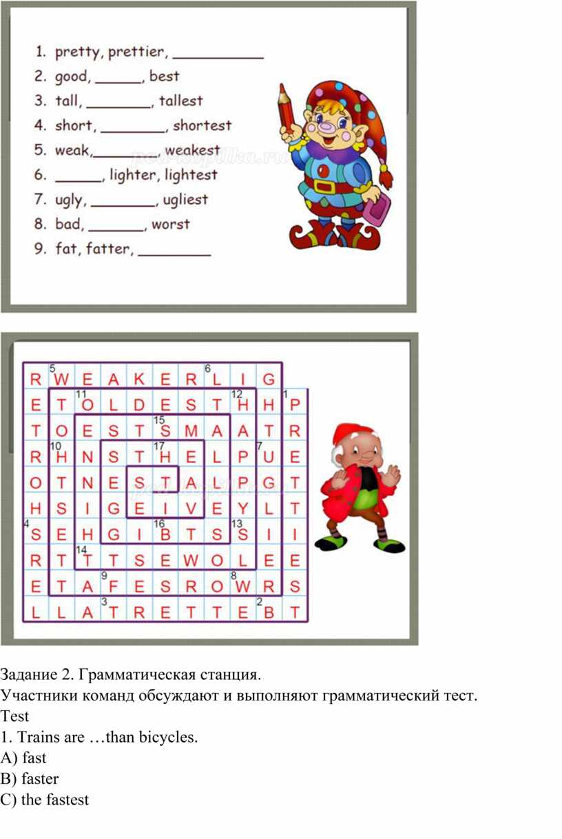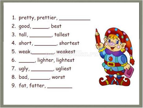 Цель: развитие лексических и грамматических навыков (Adjectives. Degrees