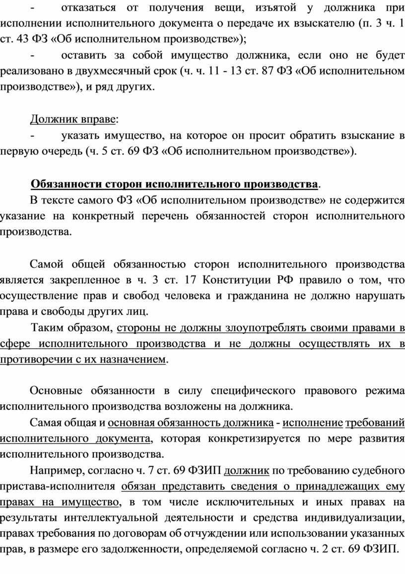 Обязанности сторон исполнительного производства.