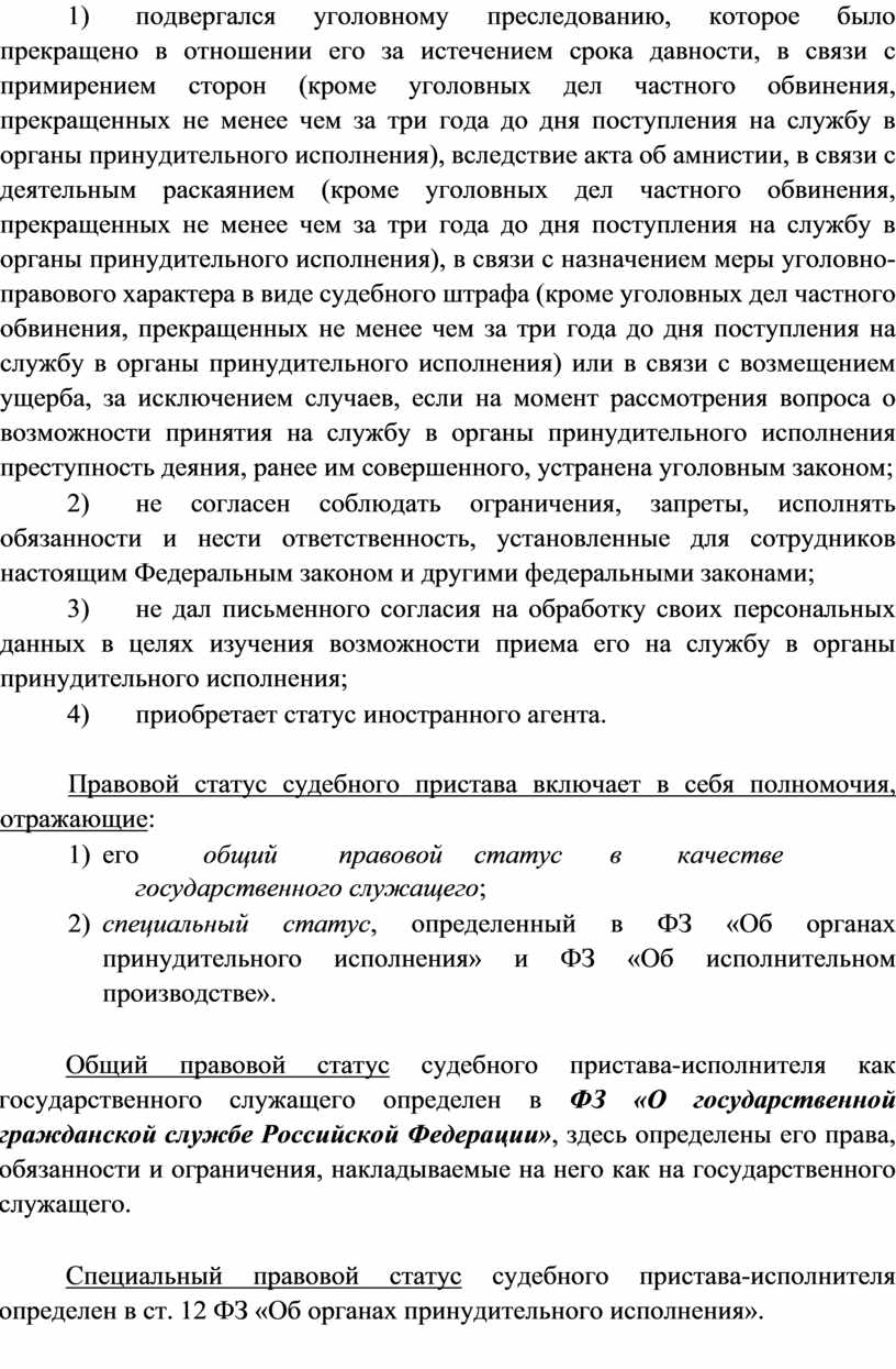 2) специальный статус, определенный в ФЗ «Об органах принудительного исполнения» и ФЗ «Об исполнительном производстве».