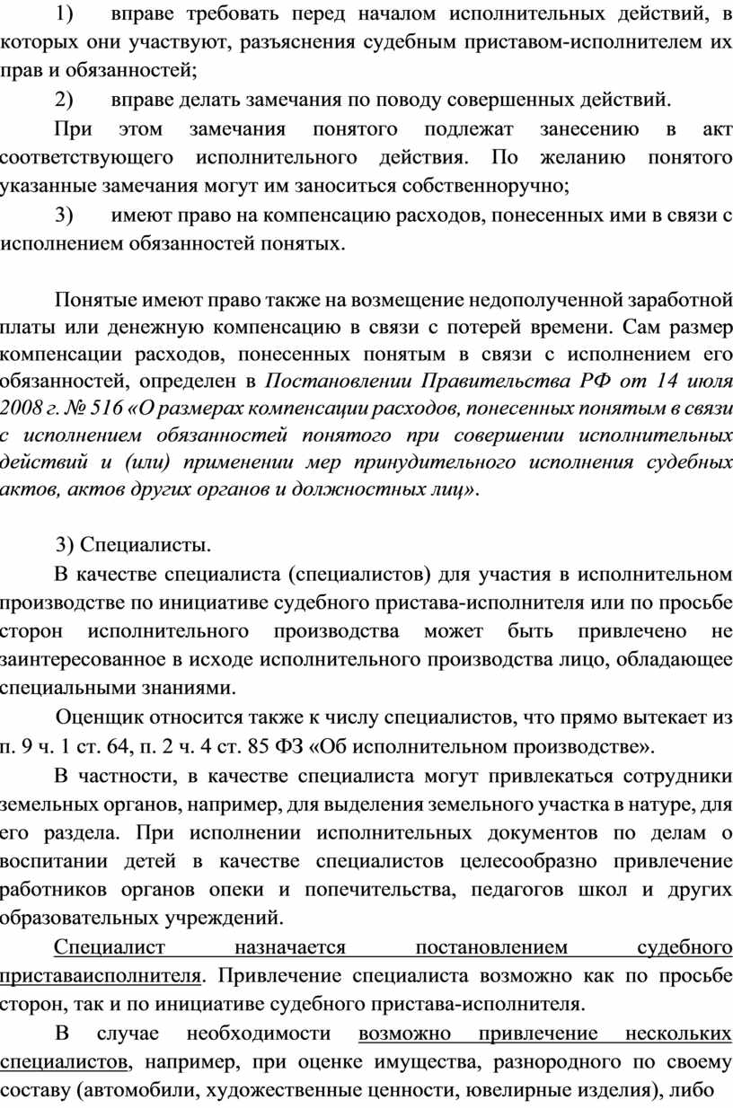 - участвовать в совершении исполнительных действий;