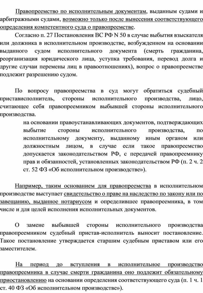 Правопреемство в исполнительном производстве