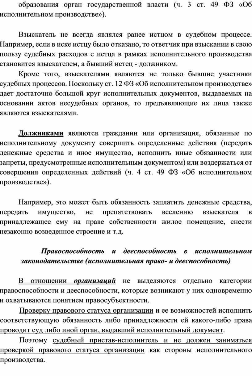 Правоспособность и дееспособность в исполнительном законодательстве (исполнительная право- и дееспособность)