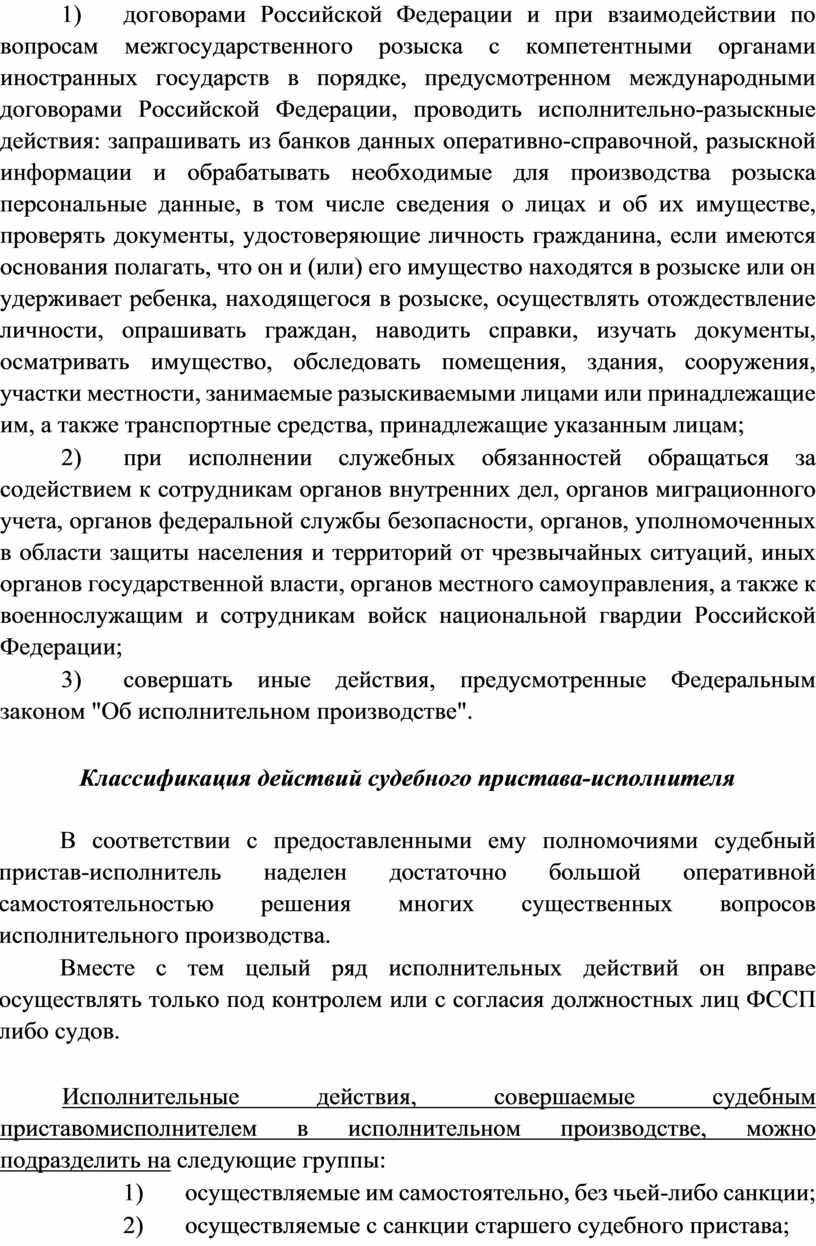 Вместе с тем целый ряд исполнительных действий он вправе осуществлять только под контролем или с согласия должностных лиц ФССП либо судов.