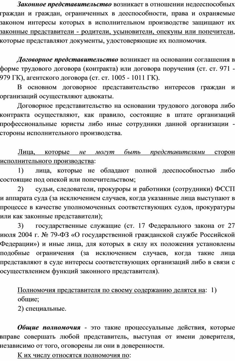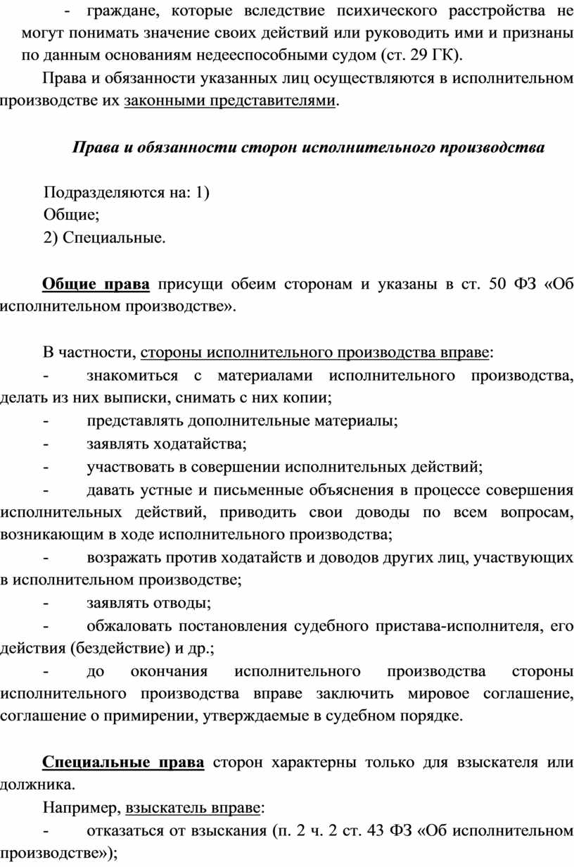 В связи с этим закон различает несколько разновидностей дееспособности в исполнительном производстве: