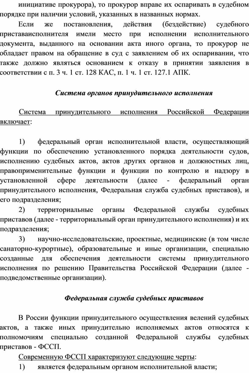 Если же постановления, действия (бездействие) судебного приставаисполнителя имели место при исполнении исполнительного документа, выданного на основании акта иного органа, то прокурор не обладает правом на обращение в суд с заявлением об их оспаривании, что также должно являться основанием к отказу в принятии заявления в соответствии с п. 3 ч. 1 ст. 128 КАС, п. 1 ч. 1 ст. 127.1 АПК.