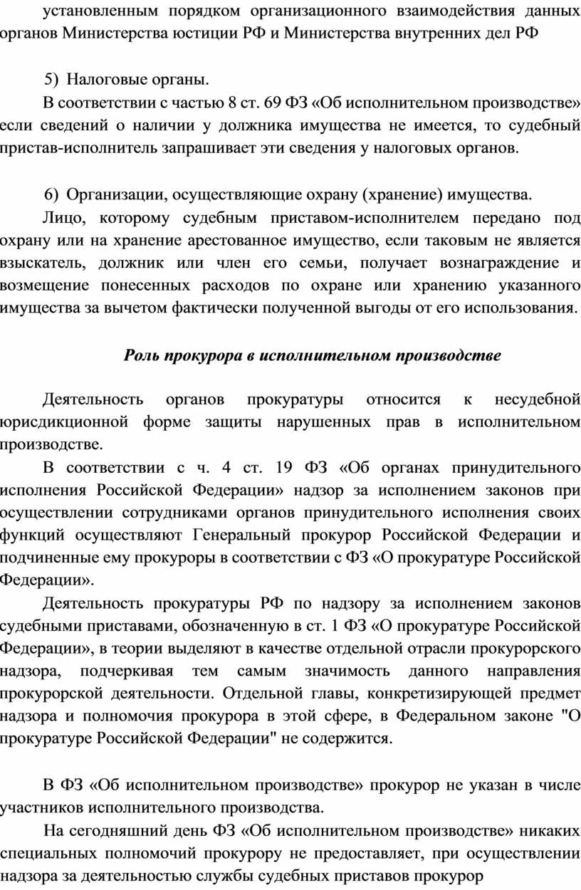 Органы принудительного исполнения как субъекты исполнительного производства