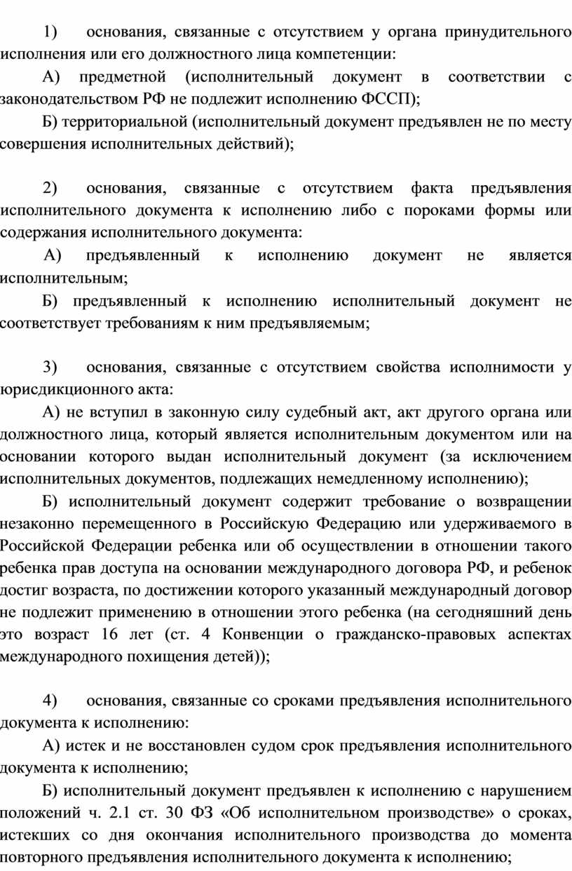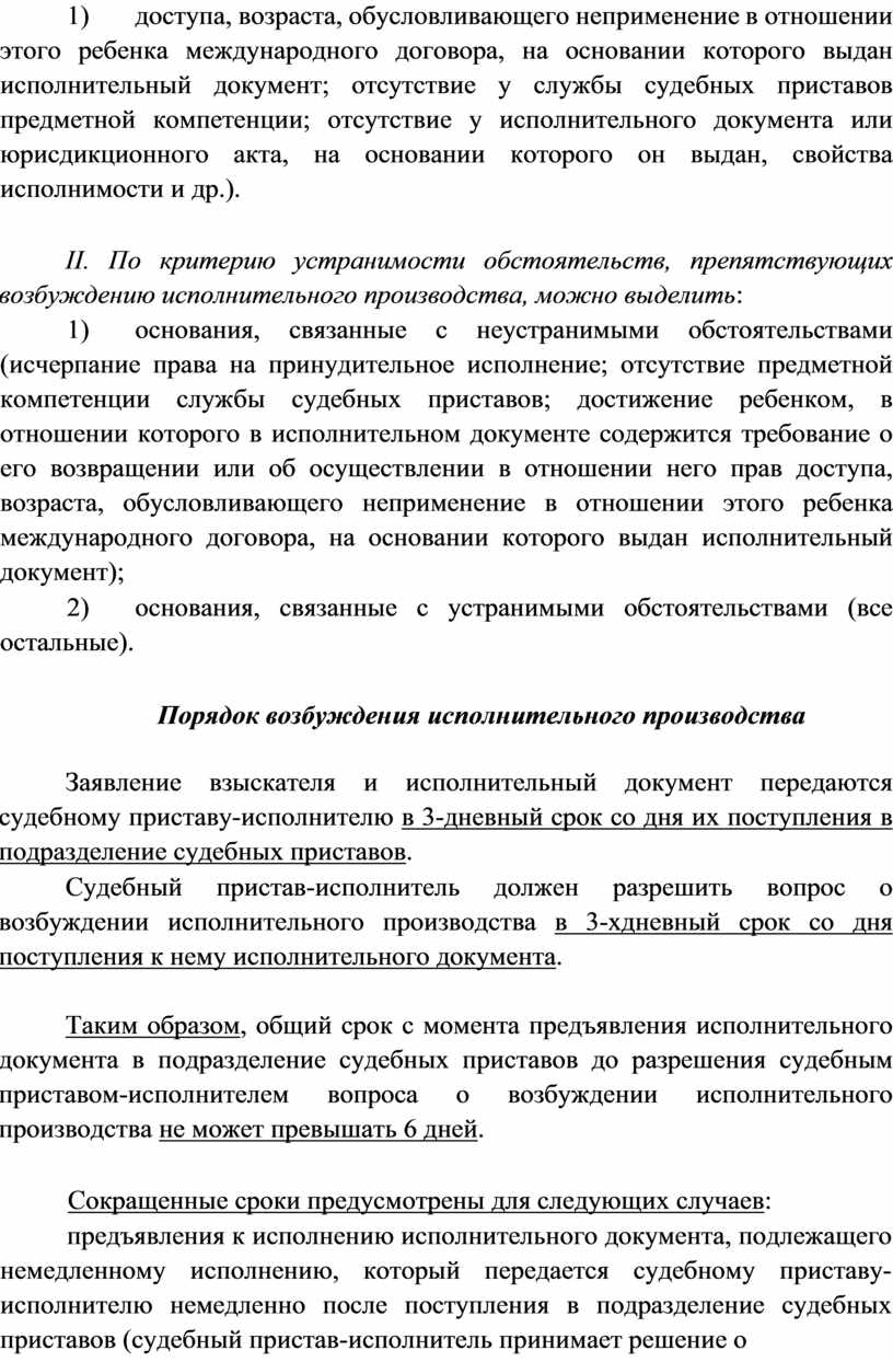 К) достижение ребенком, незаконно перемещенным в Российскую Федерацию или удерживаемым в Российской Федерации, в отношении которого в исполнительном документе содержится требование о его возвращении или об осуществлении в отношении него прав доступа на основании международного договора РФ, возраста, по достижении которого указанный международный договор не подлежит применению в его отношении (16 лет - т. 4 Конвенции о гражданско-правовых аспектах международного похищения детей);