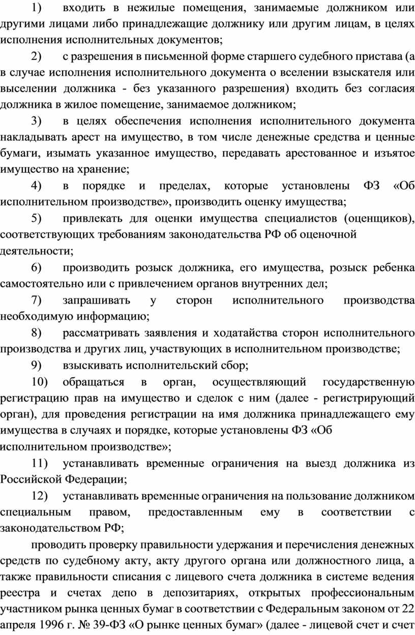 Судебный пристав-исполнитель вправе совершать следующие исполнительные действия (ст. 64 ФЗ «Об исполнительном производстве»):