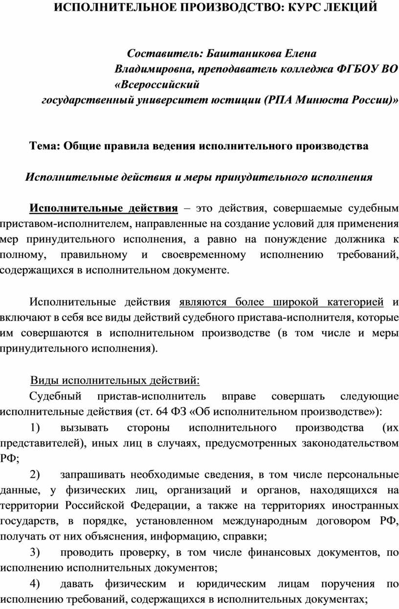 ИСПОЛНИТЕЛЬНОЕ ПРОИЗВОДСТВО: КУРС ЛЕКЦИЙ