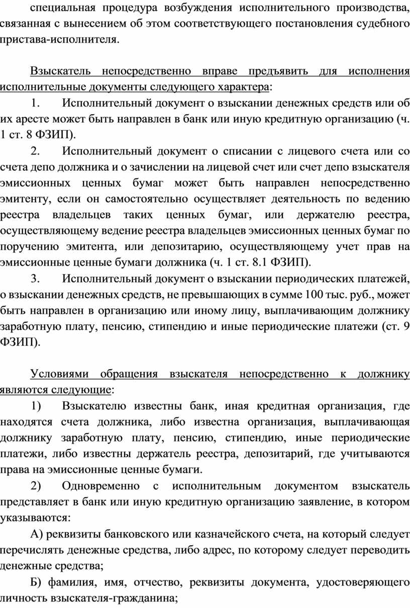 1) предъявление в установленном ФЗ «Об исполнительном производстве» порядке надлежаще оформленного исполнительного