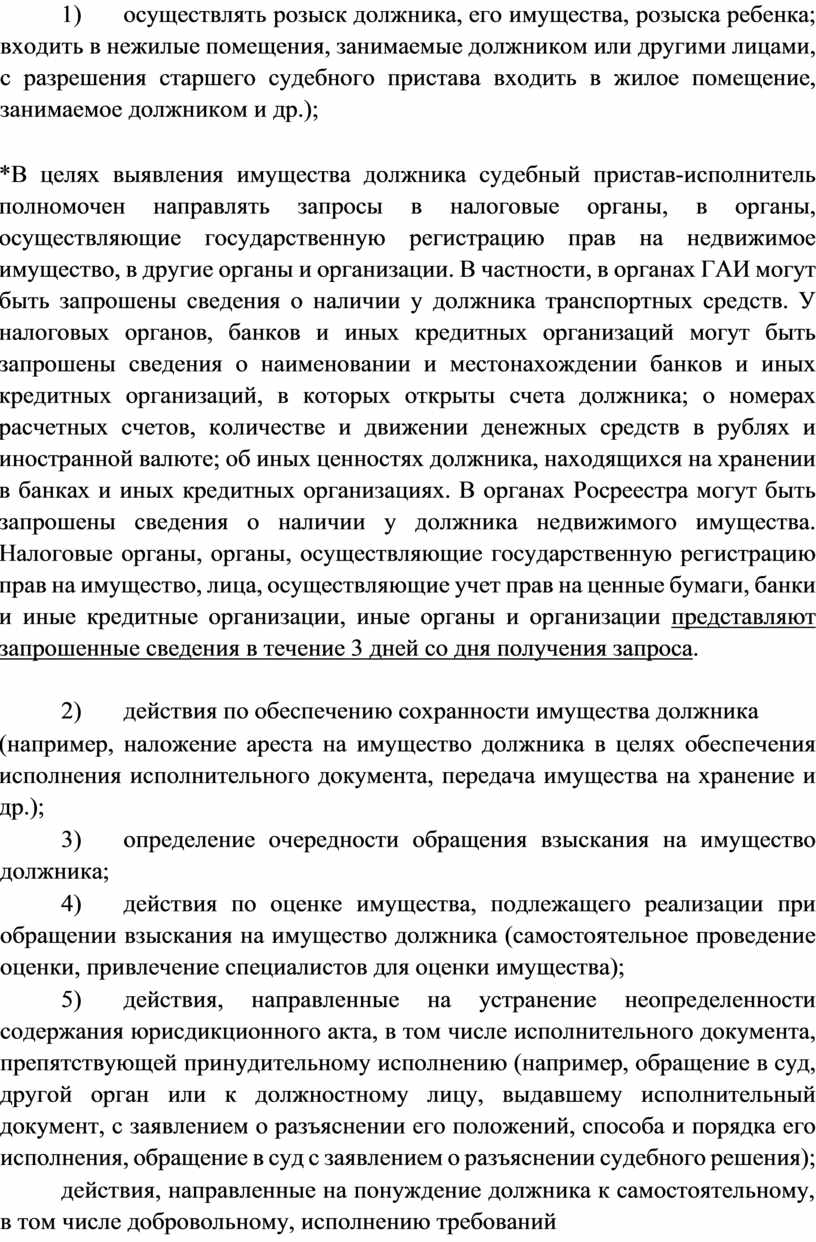 6) совершение других необходимых действий в процессе исполнения исполнительного документа.