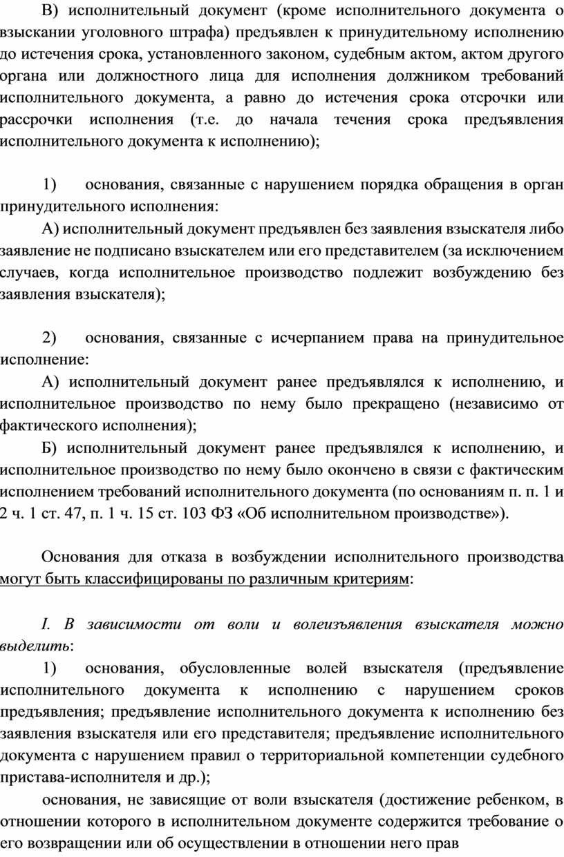 Г) возвращение исполнительного документа по требованию суда, другого органа или должностного лица, выдавших исполнительный документ; Д) направление в суд, выдавший исполнительный документ об уплате судебного штрафа, представления об отмене судебного штрафа;