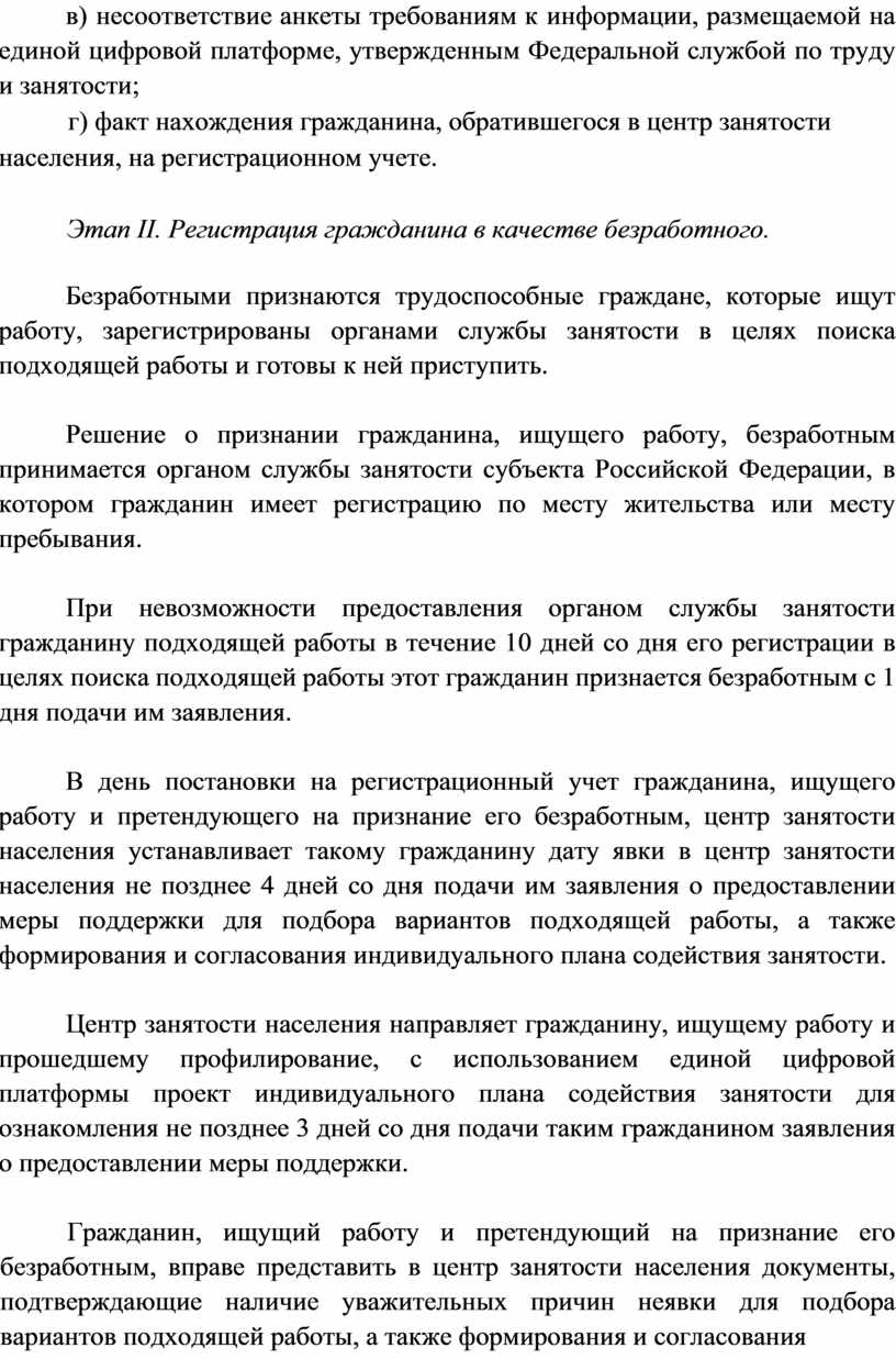 Этап II. Регистрация гражданина в качестве безработного.
