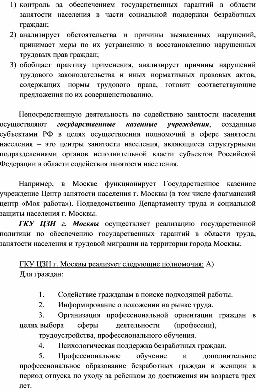 ГКУ ЦЗН г. Москвы реализует следующие полномочия: А) Для граждан: