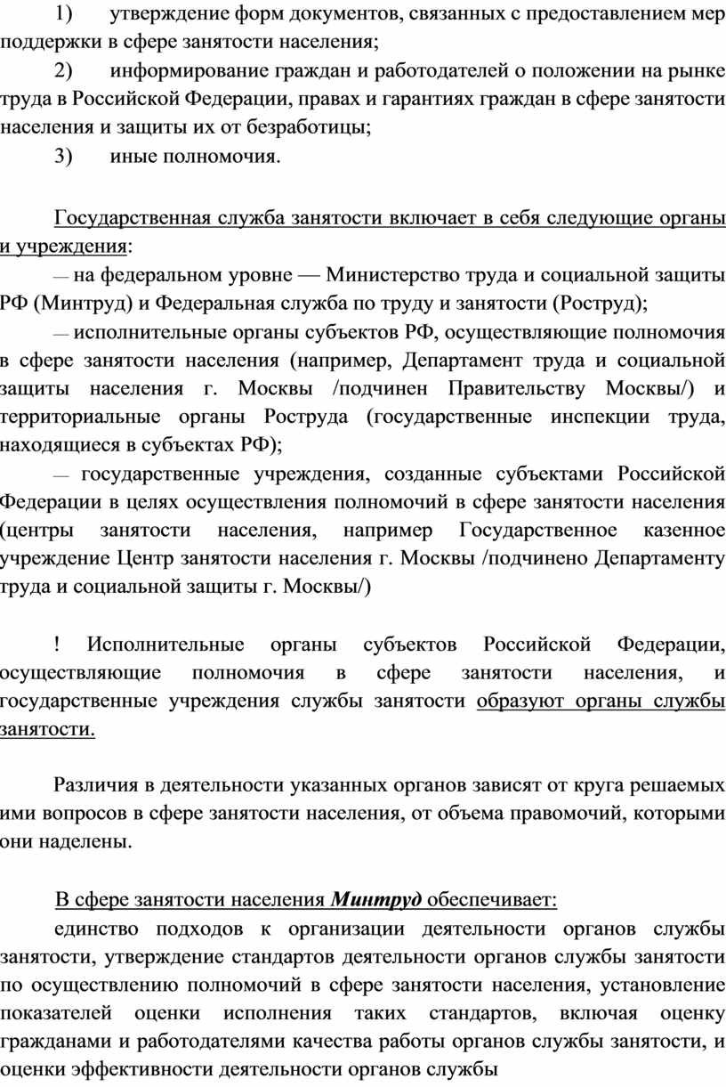 ! Исполнительные органы субъектов Российской Федерации, осуществляющие полномочия в сфере занятости населения, и государственные учреждения службы занятости образуют органы службы занятости.