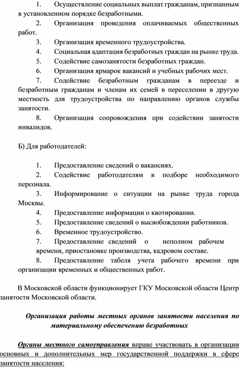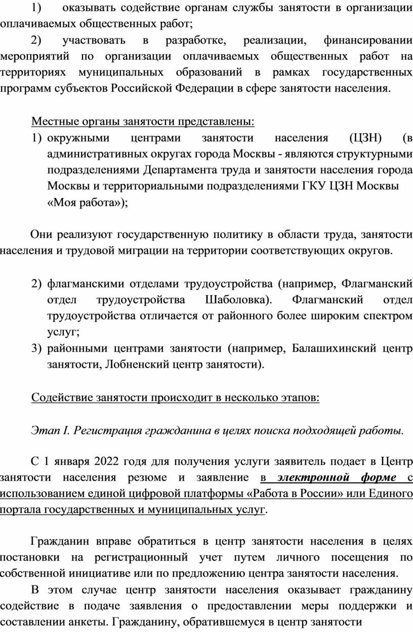 3) районными центрами занятости (например, Балашихинский центр занятости, Лобненский центр занятости).