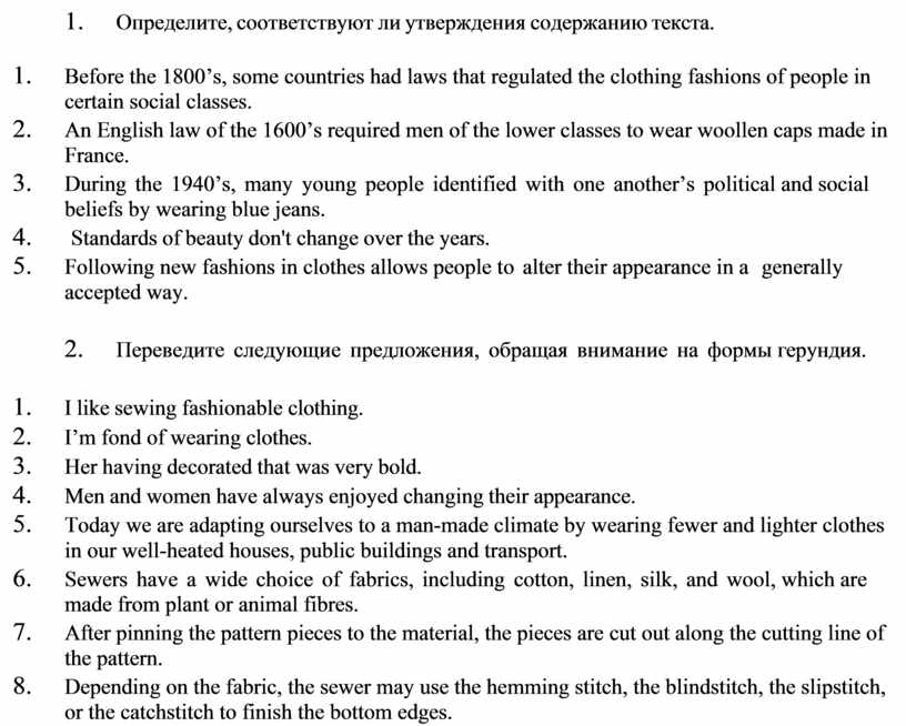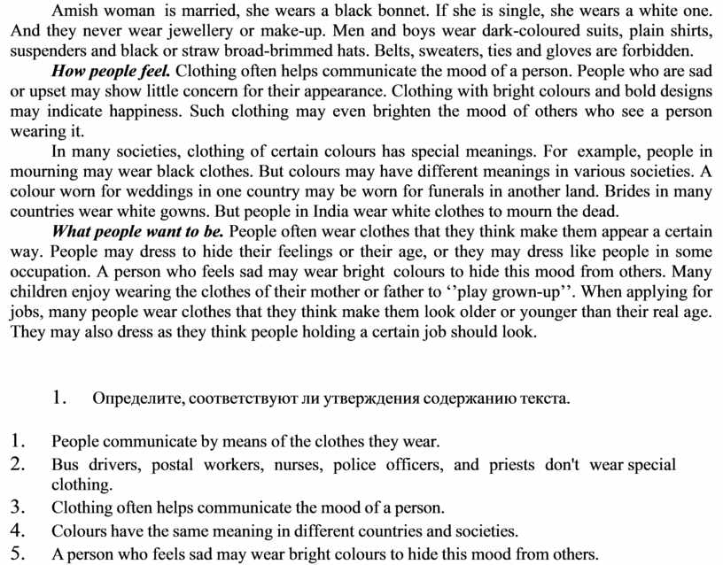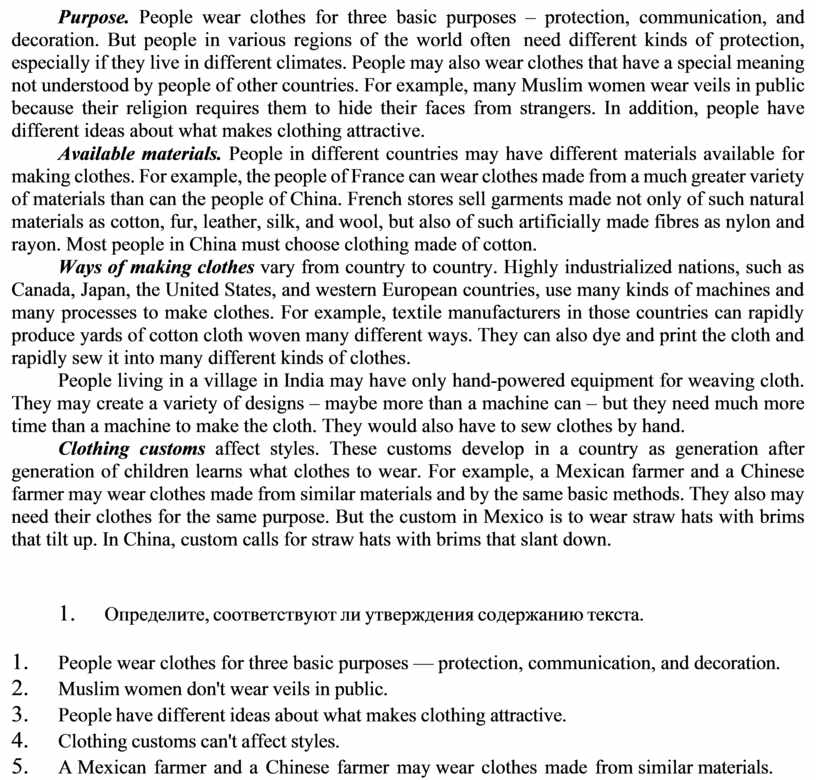 1. Определите, соответствуют ли утверждения содержанию текста.