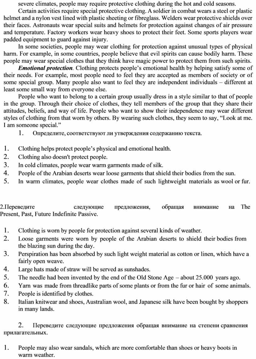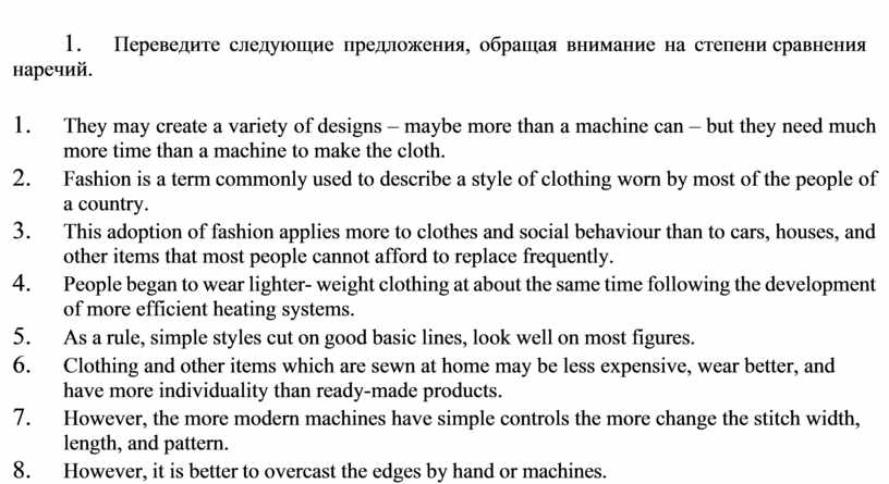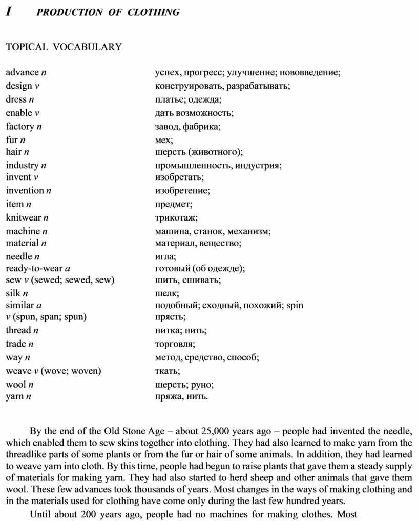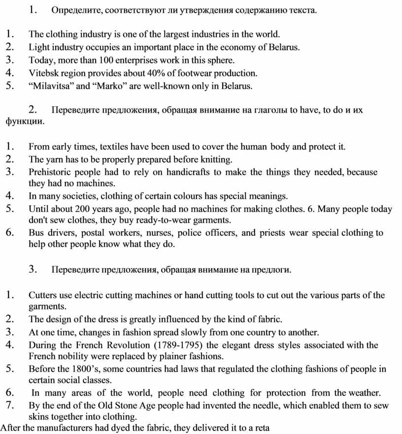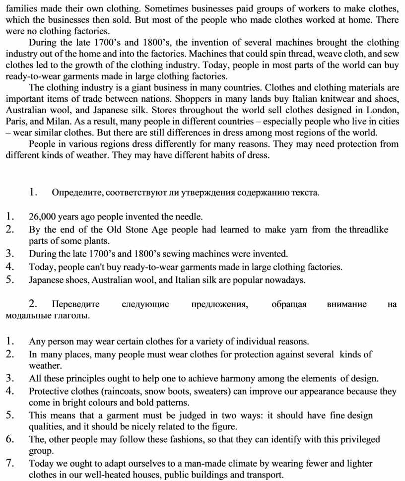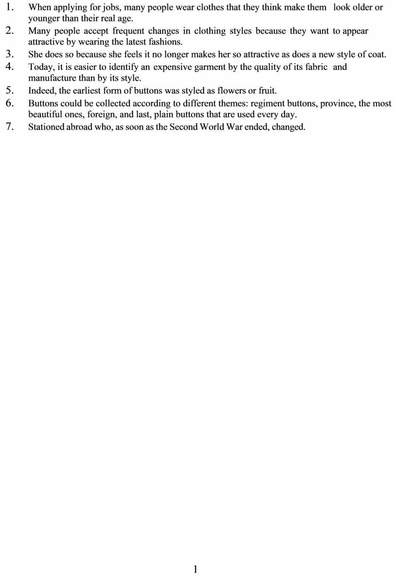 5. Until about 200 years ago, people had no machines for making clothes. 6. Many people today don't sew clothes, they buy ready-to-wear garments.