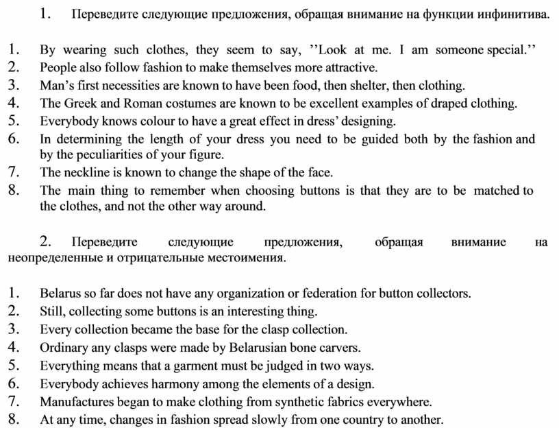 3. Переведите следующие предложения, обращая внимание на неопределенные и отрицательные местоимения.