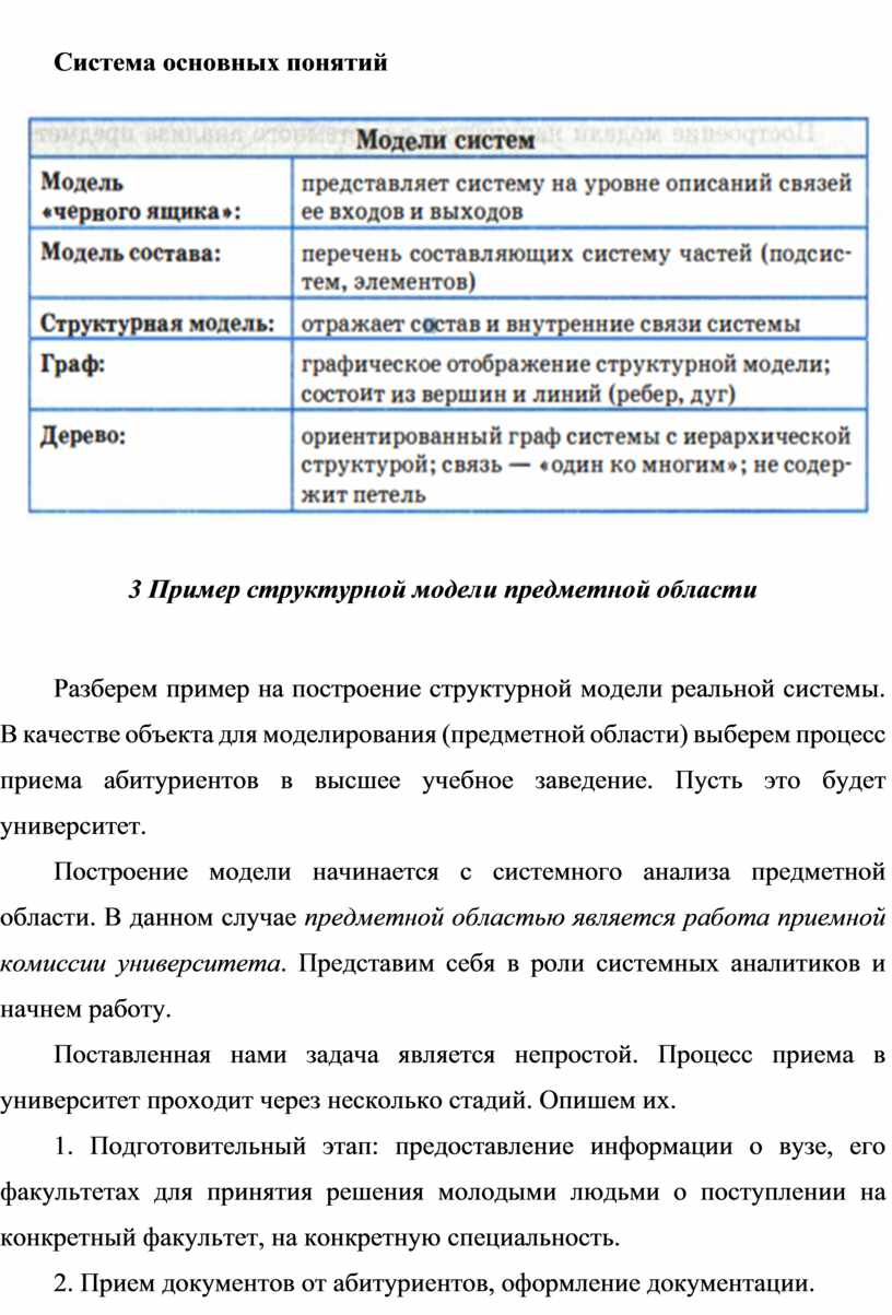 Разберем пример на построение структурной модели реальной системы. В качестве объекта для моделирования (предметной области) выберем процесс приема абитуриентов в высшее учебное заведение. Пусть это будет университет.