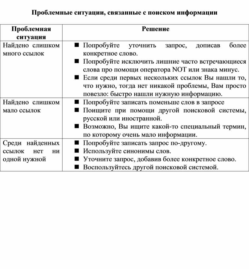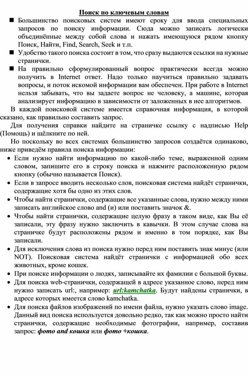 Но поскольку во всех системах большинство запросов создаётся одинаково, ниже приведём правила поиска информации: