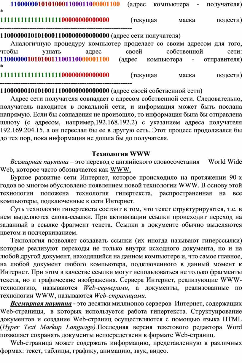 сети. Для того, чтобы быстро вычислять по IP-адресу адрес сети или хоста,