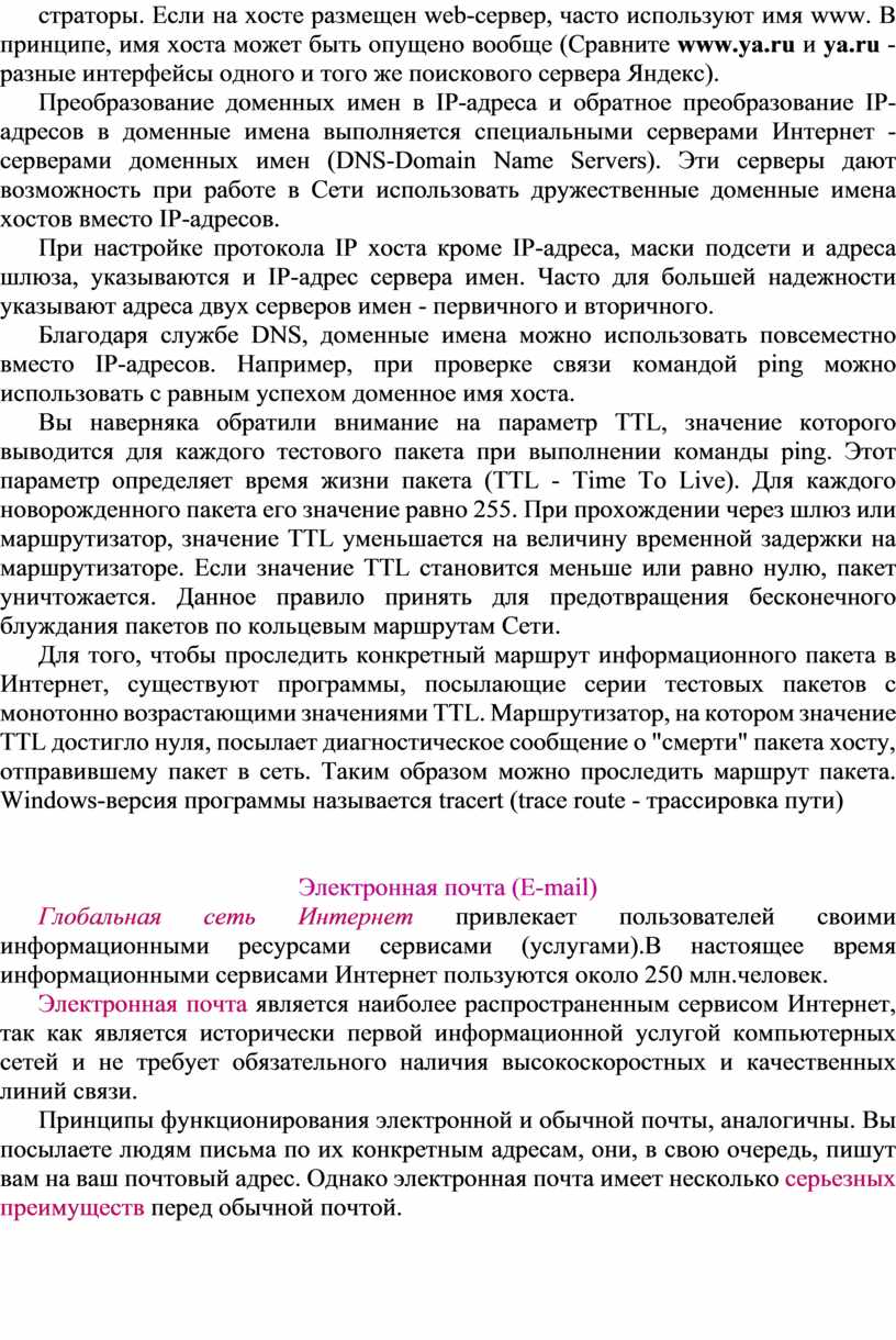 Электронная почта является наиболее распространенным сервисом Интернет, так как является исторически первой информационной услугой компьютерных сетей и не требует обязательного наличия высокоскоростных и качественных линий связи.