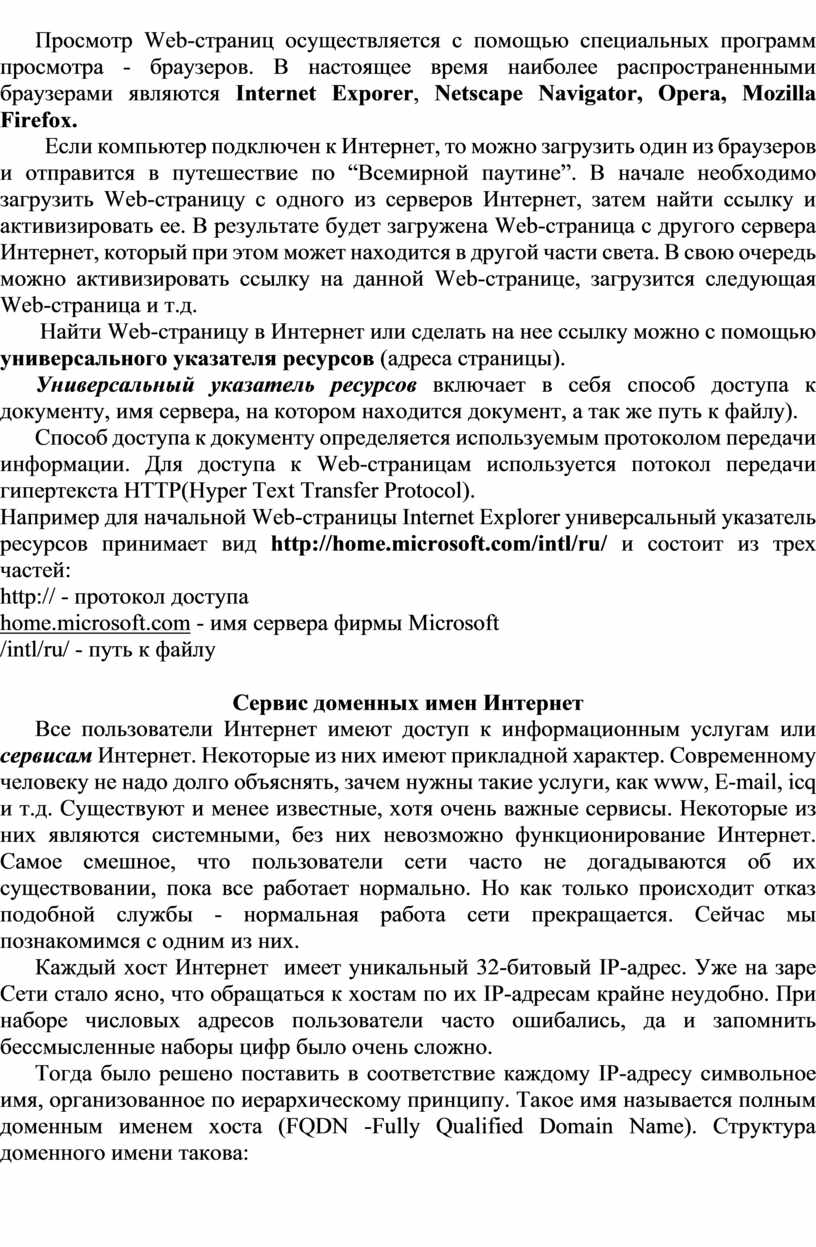 Например для начальной Web-страницы Internet Explorer универсальный указатель ресурсов принимает вид http://home.microsoft.com/intl/ru/ и состоит из трех частей: