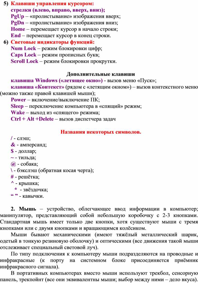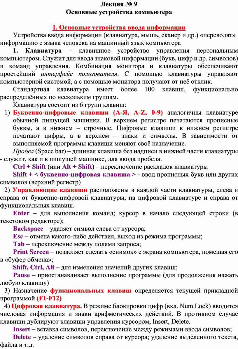 1. Основные устройства ввода информации