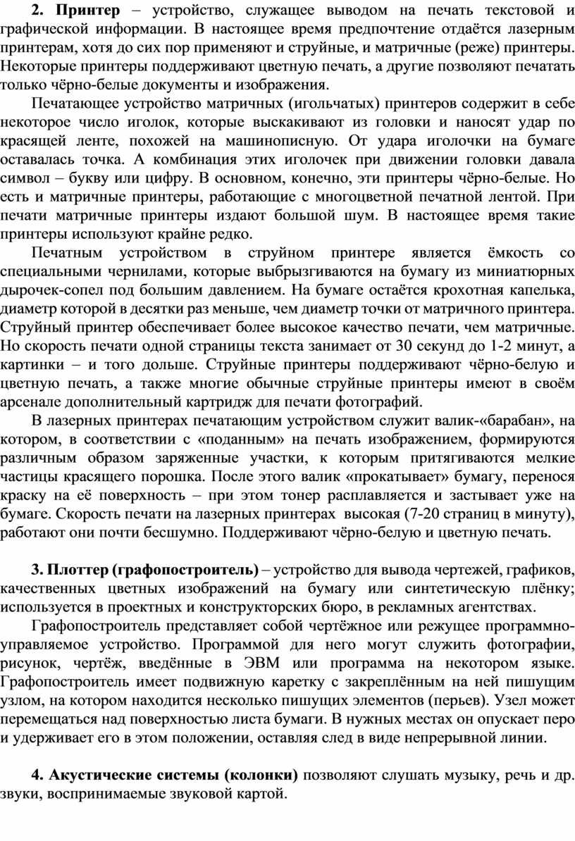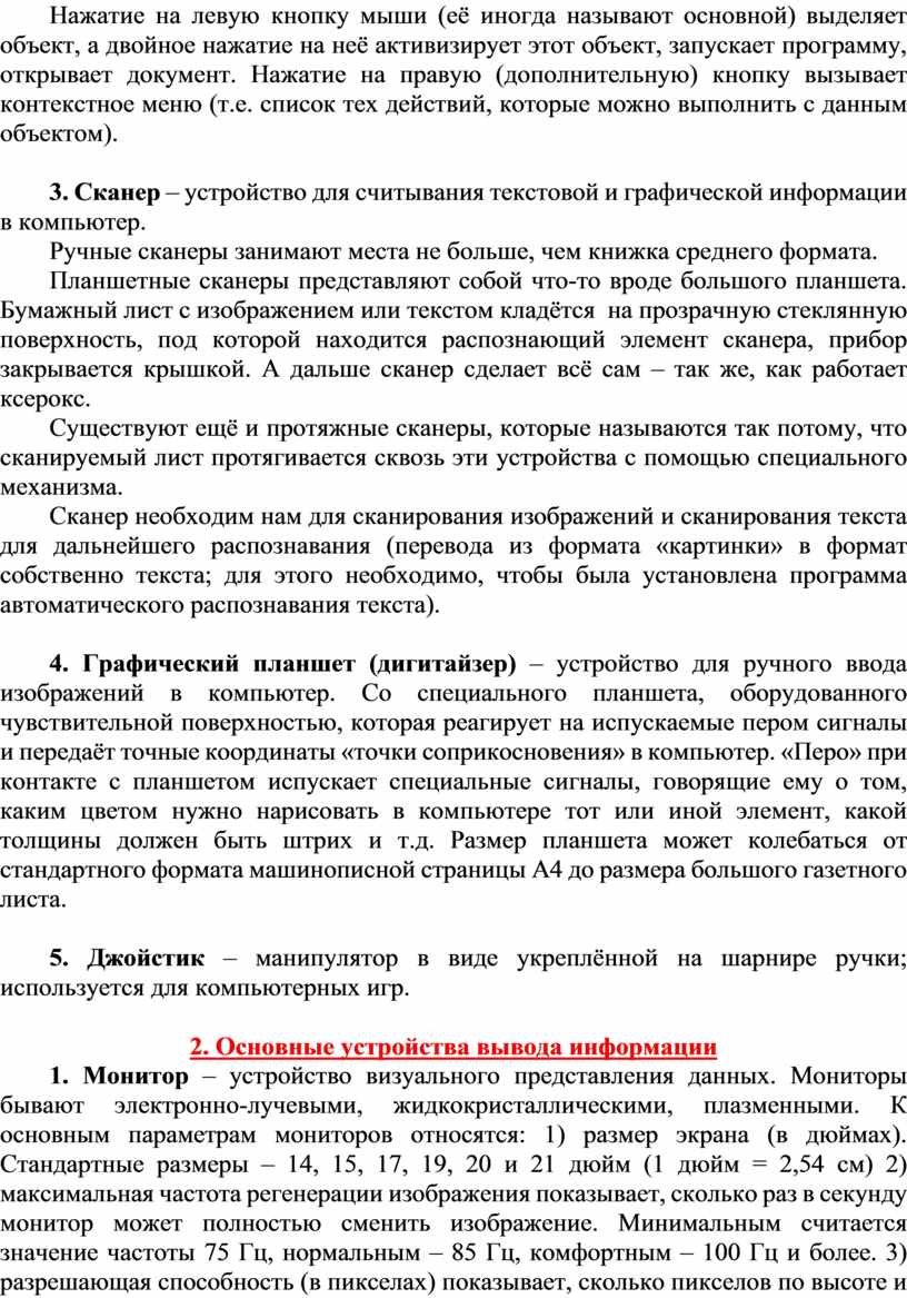 2. Основные устройства вывода информации