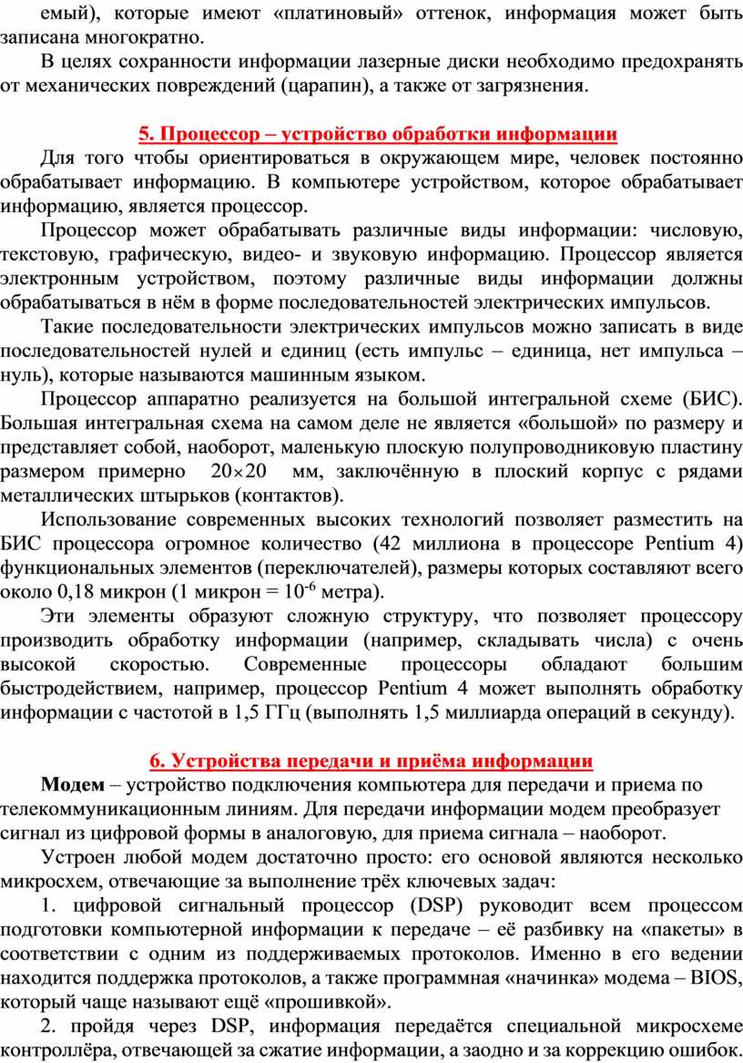 5. Процессор – устройство обработки информации