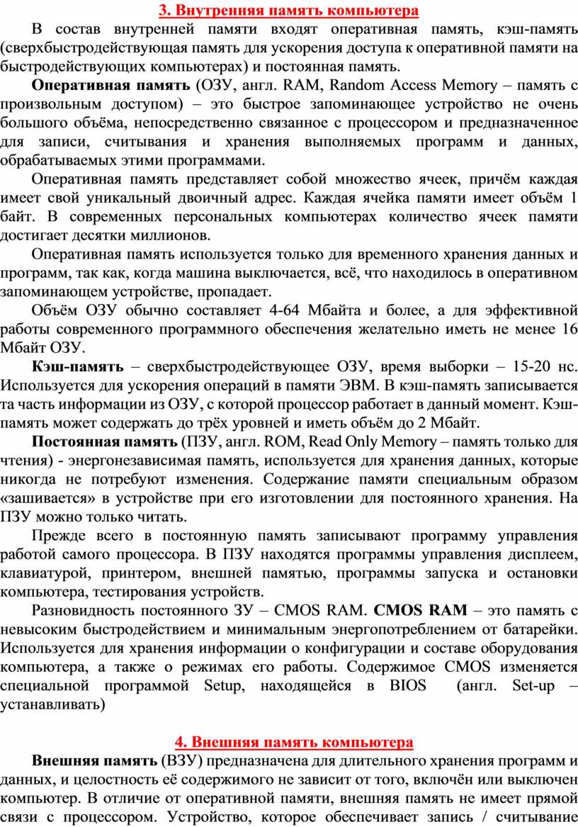 3. Внутренняя память компьютера